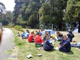 After the excursion, we all sat on the grass had lunch and lounged around.The mid day Sun was high up,with flowers of different